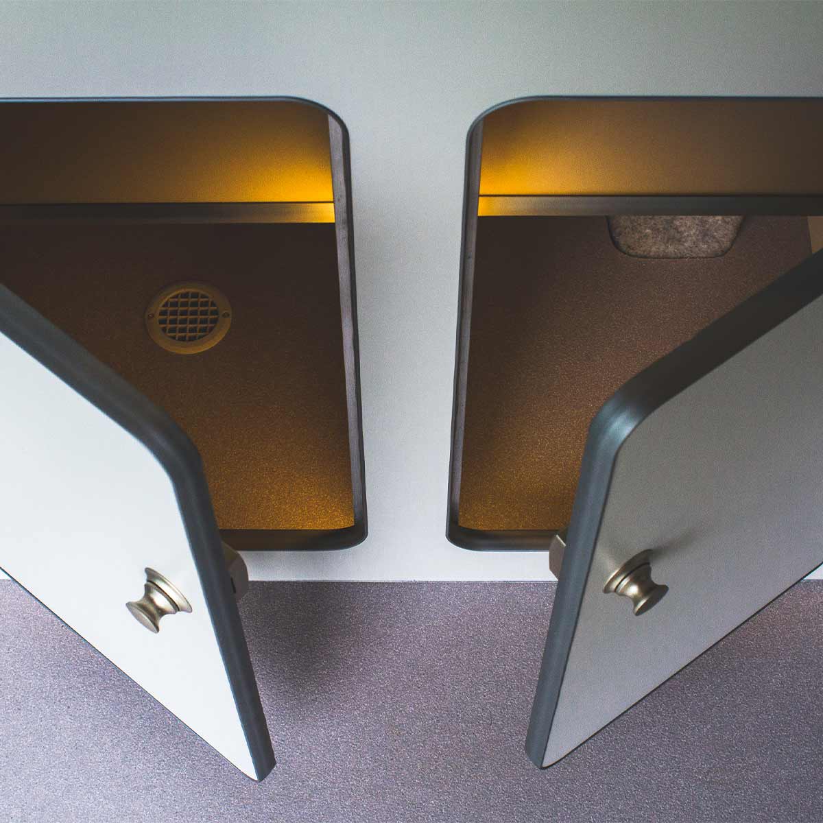 At Base Campers®, we have a wide range of colours and finishes so every van that leaves us is bespoke. Everything from carpet to upholstery has a choice, so you can make your van completely unique. And on a Glamping camper van conversion, you can take that customisation further by adding your choice of alloy wheels, front seat upholstery (leather or fabric), roof bars, detachable towbar and rear spoiler.