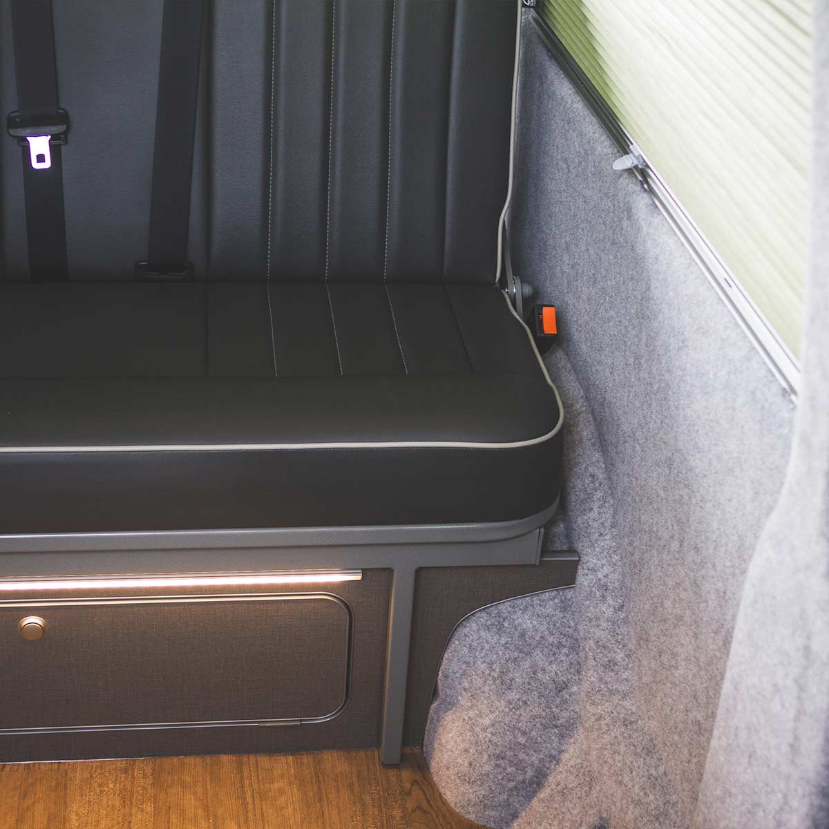 The Van Life Conversion benefits from a powerful 240V Power Management System (PMS), so from staycations to vacations you have more power to roam freer for longer. The split charge relay and leisure battery of the Van Life conversion also ensure that your camper’s battery is in top condition when you set off and the simple to use PMS will charge/run all the van’s electrics when you’re hooked up. With USB points and power sockets, you can recharge your devices after a long day’s exploration. And we have upgrades for professional digital nomads that ensure you’ve got the power you need to work on the road too.