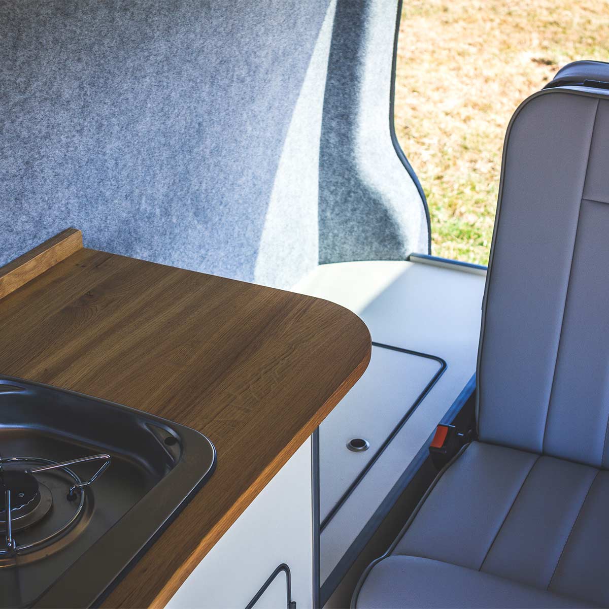 As well as a Rusty Lee Rock n Roll bed, the Van Life comes with an elevating roof with your choice of vinyl colours and roof bed so there’s room for the whole family. The only question is, who gets to sleep up top?